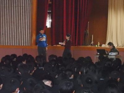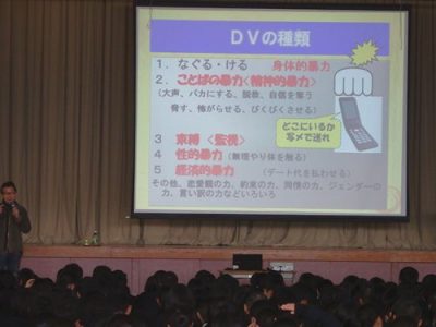 生徒健康講座 2016年12月14日 全校生徒を対象とした、健康講座を行いました。今回は、デートDV、ストーカーについて。 立命館大学の先生を講師にお招きし、デートDVに関する正しい知識を持ち、互いのこころとからだを尊重し自分らしく生きるためにはどうしたらよいのか、具体例を挙げてわかりやすくお話いただきました。講座を通して互いに成長し合える「対等な人間関係」を築くことの大切さを学びました。 本校教諭によるロールプレイング