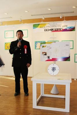 1月29日(日)グランシップにて高校生デザイングランプリ2016グランプリ受賞作品の贈呈式が行われ、本校の情報デザインコース2年生鈴木君が出席しました。