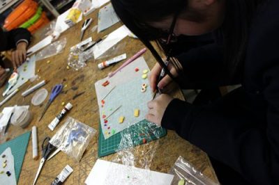 2月16日(木)、17日(金)の2日間、静岡デザイン専門学校にて、2年情報処理科情報デザインコース26名が体験授業を受けてきました。1日目は粘土を使ってのミニチュアパン作りとグラフィックデザイン実習、2日目はトートバック作り、アロマキャンドル作り、MACを使用しての名刺作り、と盛りだくさんの2日間でした。
