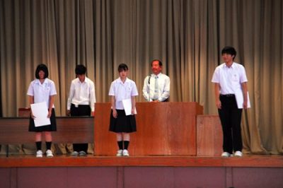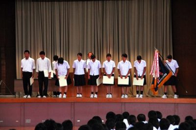 表彰・壮行会 2017年7月7日 表彰・壮行会が行われました。 表彰式 女子ソフトテニス部、男子ソフトテニス部、水泳部、ワープロ部、文芸部 情報処理部 ITパスポート 新人競技大会 情報処理競技会 壮行会 硬式野球部 県大会 水泳部 硬式野球部 ワープロ部 情報処理部