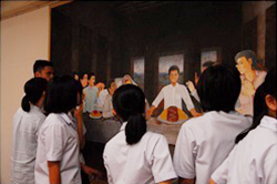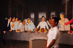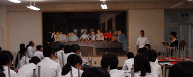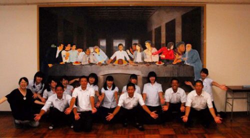 本校の食堂に「最後の晩餐」ならぬ、美術Ⅱ授業選択者13名制作による「最高の晩餐」が展示されました。