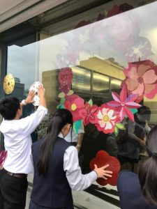 静岡東海証券株式会社様より、依頼を受けウィンドウディスプレイの制作、展示を美術Ⅱ選択者13名が行いました。