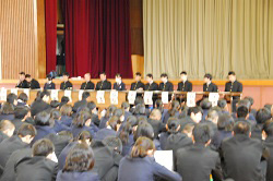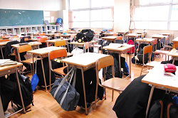 防災訓練 2017年11月8日 抜き打ち避難訓練を行いました。今年2回目ということもあり、慌てることなく避難行動をとっていました。 生徒総会では、後期役員による活動内容の発表がありました。 避難訓練(机の下に一時避難) 生徒総会