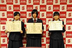 平成29年度 税に関する高校生の作文の募集にあたり、本校の生徒3名(杉山、早川、八百板)が、優秀賞を受賞し本校で授賞式を行いました。