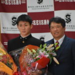 令和2年10月26日のプロ野球ドラフト会議において、本校3年生の高田投手が横浜DeNAベイスターズ6位で指名を受けました。本校創立以来27人目、44年ぶり、プロ野球選手の誕生です。