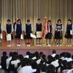 表彰・壮行会を行いました。 (水泳部、女子ソフトテニス部、珠算部、情報処理部、ワープロ部、簿記部、美術部、男子テニス部)詳しくは生徒活動情報をご覧ください。 壮行会では、東海大会に出場する生徒たちが壇上に上がり、生徒会長 …