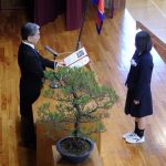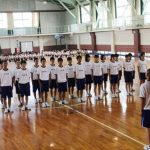 1年生が集団行動コンテストを行いました。 集団としての行動を秩序正しく行う「集団行動」の動きを身につけ、校歌をクラス全員で歌うコンテストは、整然とした動きの中に迫力を感じます。