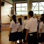 今回は、地震発生後余震が続き、今後大きな揺れが予想される想定で行われました。 地震発生後、直ぐに机に潜り、落ち着いてから災害伝言ダイヤル「171」を利用し、家族にメッセージを残す体験をしました。 本日は雨天のため体育館に …