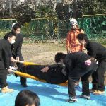 今年度3回目の防災訓練が行われました。 はじめに、全学年による避難経路の確認と安全避難の訓練を行い、その後、各学年に分かれそれぞれの訓練・体験を行いました。 3年生は、応急担架の作り方と煙体験。 応急担架では、生徒が作っ …